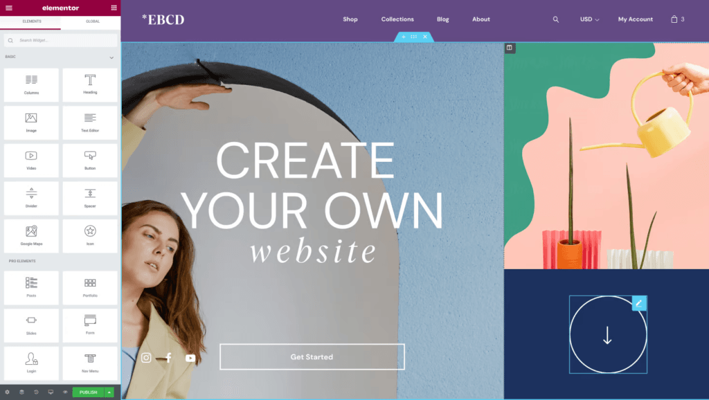 On WordPress, when you build a website, you can use different plugins to help you build it. For example, you might use Elementor, which is a popular drag-and-drop builder with almost complete customizability.